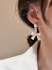 Red Bow Pearl Flocked Earrings: S925 Silver Needle, Women's Autumn/Winter Fluffy Studs