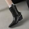 Fashion 2025 New Leather Shoes Women Genuine Square Toe High Heel Ankle Boots Thick Square Heel Slip on Western Boots Cowboy Boots Women