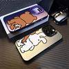 Cute Cartoon Brown Bear Electroplate Silver IMD Phone Case For iPhone 16 11 12 13 14 15 Pro Max 7 8 Plus 16E XS Shockproof Cover
