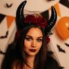 Lace Trim Halloween Cow Horns Headband Flowers Design Red Rose Headband Women's Accessories