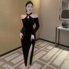 Hepburn retro off-the-shoulder sexy dress niche design slim and thin temperament celebrity high-end