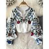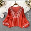 RUGOD 2022 National Style Round Neck Shirt Women's Design Loose Cotton Linen Embroidery Flower Retro Ruffled Slim Top