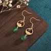 Creative National Tide Style Fu Lu Gold-Plated Stud Earrings with Chalcedony Jasper Gourd for Women
