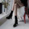 Fashion versatile patent leather square head thin boots thick heel medium boots children's new high heel short boots in autumn and winter 2025