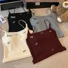 Kumikumi Pure Desire Style Bows Brushed Camisole Women's Autumn Retro with Chest Pad Short Inner Tops