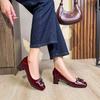 Square head thick heel high heels 2025 new burgundy patent leather middle heel single shoes spring and autumn light mouth versatile gentle shoes