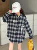 Plaid Lace Women Shirt Long Sleeved Patchwork New Blouse Autumn Loose American Style Woman Trendy Shirts