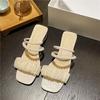 Internet celebrity fairy wind two wear sandals female summer 2025 new one word with pearl small fragrant wind thick heel medium heel slippers