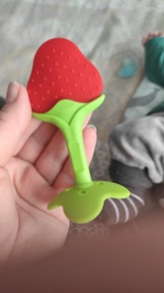 Strawberry ankom MD ✅ for en måned Den har ingen lukt, ingen defekter ✅ Helt silikon, finere hale ✅ God kvalitet, barnet liker det veldig godt. Han holder den i hånden fra en måned, ved 3 måneder spiller han mer aktivt med den. Perfekt når tennene kommer ut ✅ Jeg anbefaler ⭐⭐⭐⭐⭐💯%