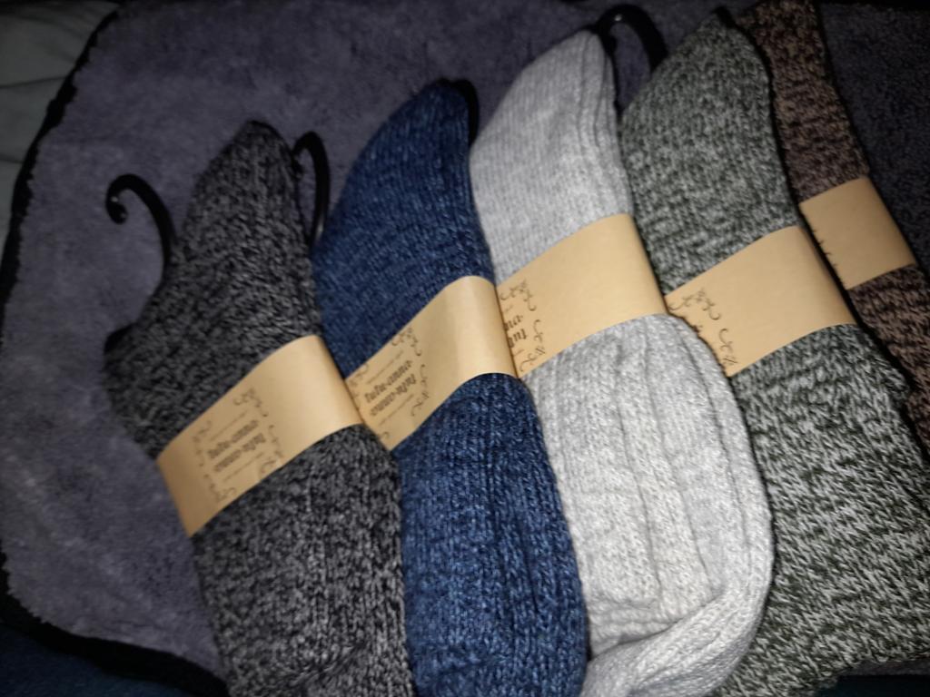 Tøffelstrømpene varmer godt på føttene og har en veldig fin lys farge. Herrestrømpene er de jeg spurte om.