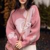 Winter Thick Warm Women Sweater Loose Vintage Rose Print Knitted Top