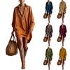 Women's Casual Loose Collar V-Neck Button Irregular Patchwork Top Women's Long Sleeved Dress