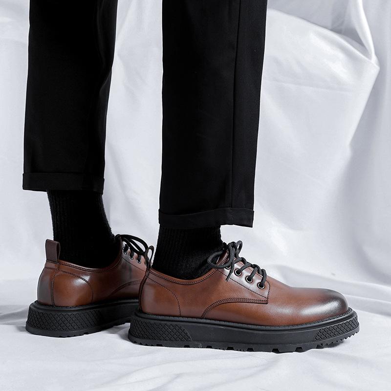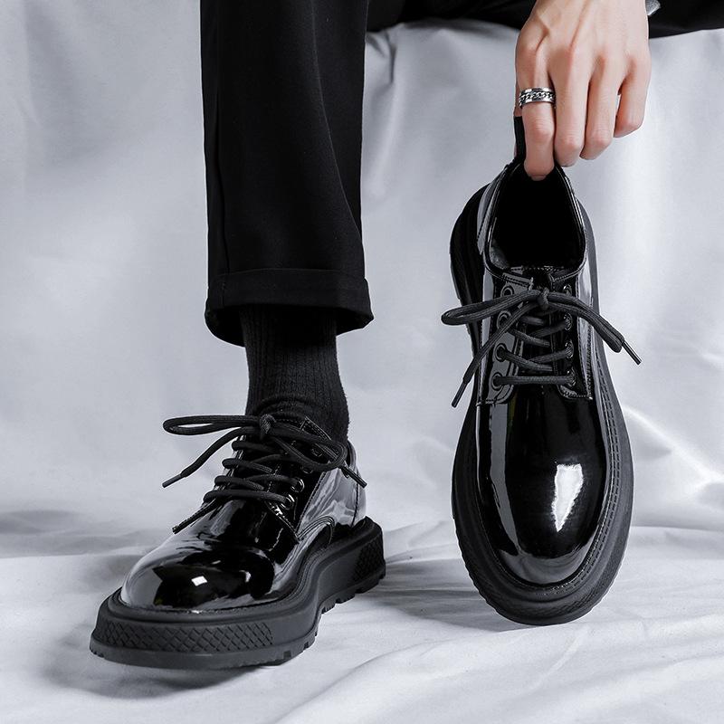 FashionBlack British Style Thick Bottom Round Toe Patent Leather Shoes Work Shoes Handmade Casual Formal Oxford Shoes Lace Up Men Shoes