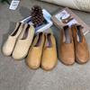 Handmade Leather Single Shoes Flat Round Toe Cowhide Shoes