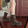 Brown Slim British Style Thick-soled Martin Boots for Women Autumn Small Size Thick Heel Retro Short Boots