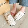 Baotou Flat Slippers 2024 Summer New Women's Shoes Solid Color Casual Weave Mules Slipper Beige Slip on Beach Sandals Slides