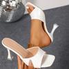 Fashion Women Sandals Ladies Square Heels Elegant Summer Slippers Outside White Black Leather Female Slides Fashion Woman Sandals