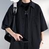 Men's Short Sleeved Shirt Versatile Solid Color Oversized Men's Bubble Shirt Jacket