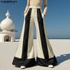 INCERUN Men High Elastic Back Waist Solid Ruffled Casual Long Flare Trousers