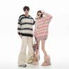 Red and Black Striped Seahorse Wool Men's Knitted Sweater - Winter Mink-Like Couple's Jacket