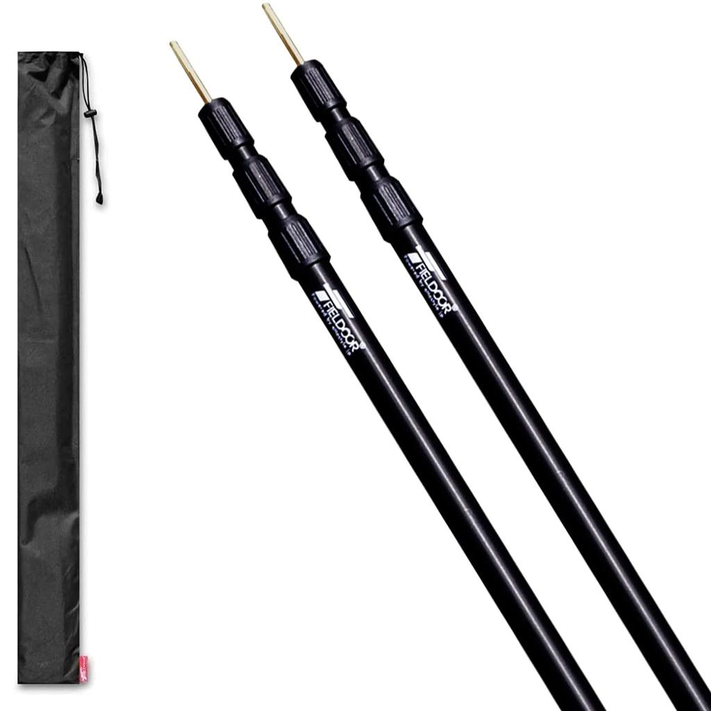 FIELDOOR Teleskopisk aluminium teltstang Diameter 28mm (Høyde 89-230cm) 3-delt trinnløst justeringssett med 2 [Matt Black] Inkluderer oppbevaringspose-swing