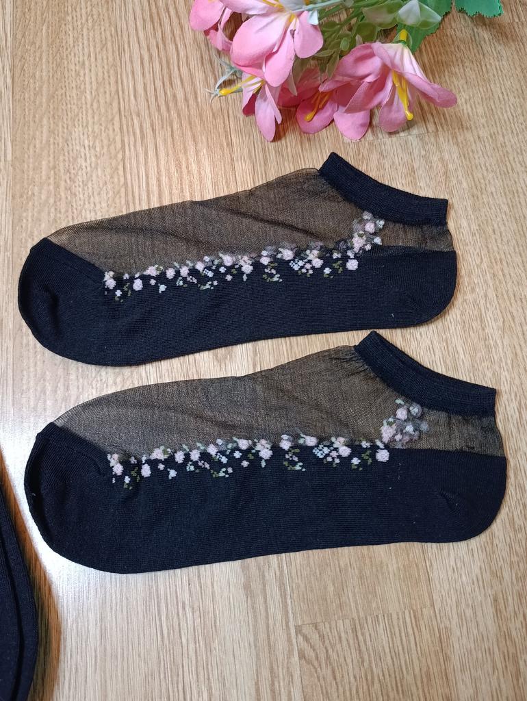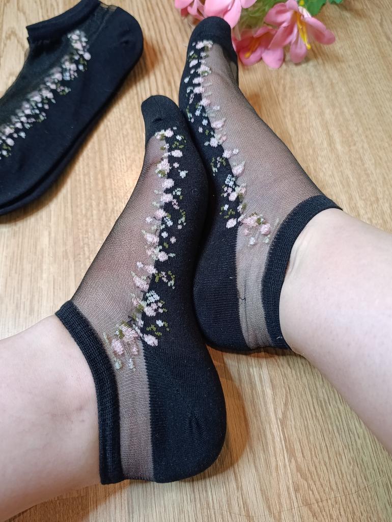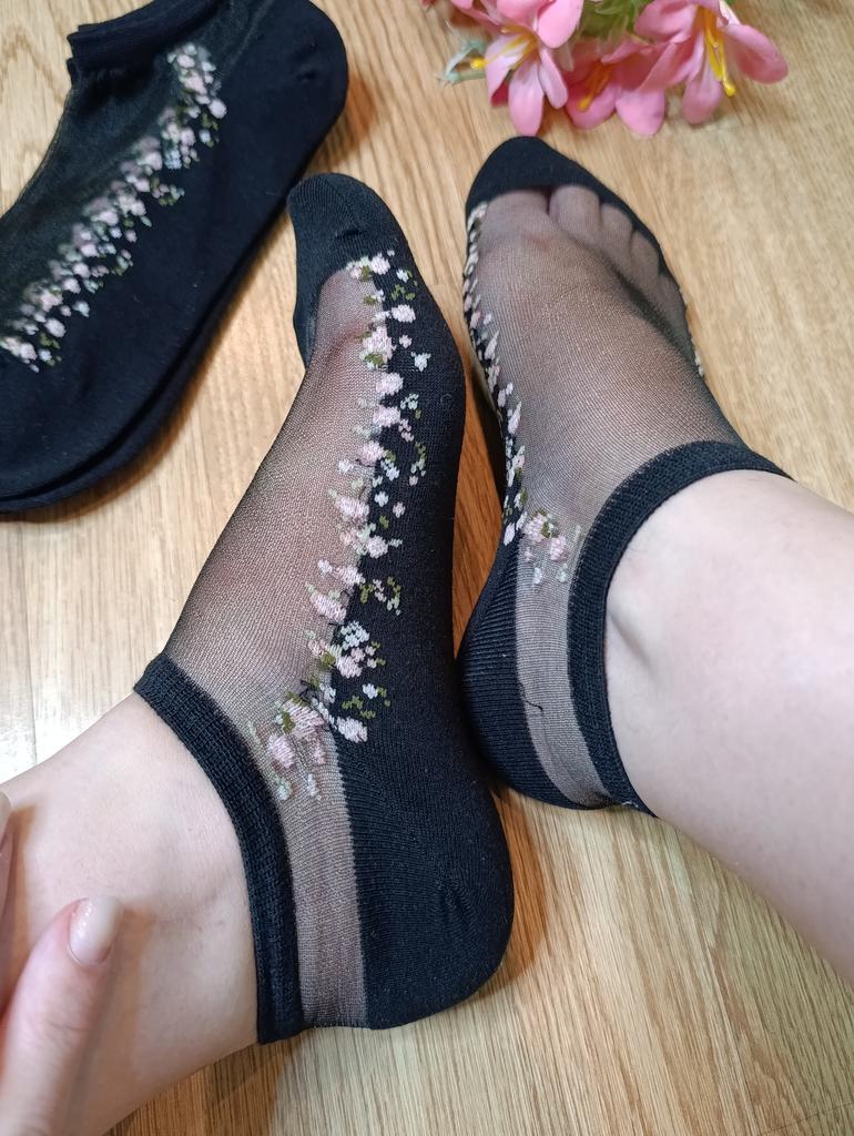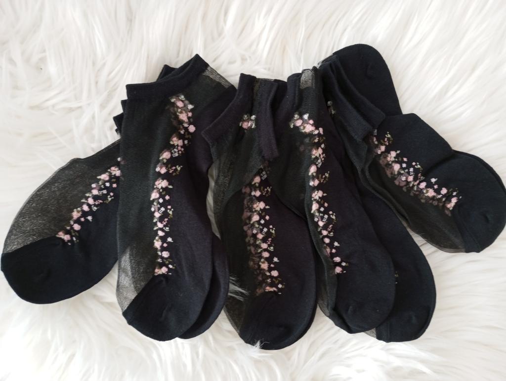 5 par sokker for kvinner vår/sommer tynne blomstrete krystall silke båtsokker for kvinner usynlige sokker pustende glassstrømper