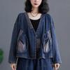 Women's Vintage Design Denim Jacket Spring Loose Casual Patchwork Tops