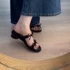 French bow sweet square head one-word slippers women's summer wear non-slip short heel thick heel with skirt