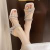 2025 summer new square head word with sandals women wear thick heel temperament rhinestone high heel sandals women