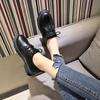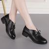 Round head lace-up small leather shoes women's 2025 black first-layer cowhide thick heel work shoes soft leather loafers