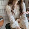Four Seasons Lace Mesh Semi-High Neck See-Through Long Sleeve Korean-Style Blouse