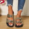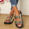 Large size women's casual cool slippers flat-soled women's shoes beach shoes wear metal buckle open-toed thick-soled sandals