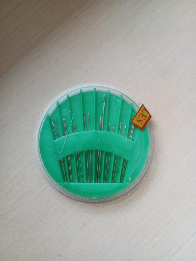*Hjemmesysett – en praktisk løsning for enhver liten reparasjon* Et kompakt og minimalistisk designet sett, som inkluderer en lett boks i plast for enkel transport med et utvalg av synåler for håndsøm. Ideell for hjemmebruk, raske reparasjoner eller som et nødsett for reiser. Passer også for nybegynnere og de som er erfarne med håndsøm.. - Materiale: Plast av høy kvalitet - Innhold: Håndsynåler i en praktisk disk - Farge: Tilfeldig (som vist på bildet) - Vekt: Kun 40 gram – komfortabel og lett å bære