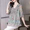 Vintage Printed Blouse Summer Thin Broken Flowers Loose Waist Casual O-Neck Commute Half Sleeve Shirt