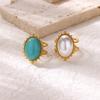 1 Pair Vintage French Natural Stone Blue Zircon Stainless Steel 18k Gold Plated Women's Stud Earrings for Women's Daily Wear