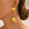 PuRui Gullfargede Blomster Lange Øredobber med Heng for Kvinner Elegante Zirkon Jenter Koreansk Stil Dingleøredobber Nyhet Party Tilbehør