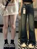 Commuter personality micro-pull jeans women's spring and autumn new retro high-waisted elastic horseshoe horn jeans