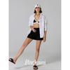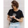 Blacknini Yin Huafu Less Is More Black and White Vertical Cut Chain Decoration round Neck T-shirt