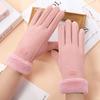Winter Rabbit Fur Mouth Full Finger Touch Screen Mittens Plus Velvet Warm Gloves For Women