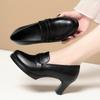 Mote Komfortable Svarte Myke Skinnsko Dyp Utskjæring Vår Blokkhæler Sko Kvinner for Kontor Mamma Modell Allsidig2025