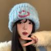 Forest recommended smiley face wool stacking hat big head circumference autumn and winter wind simple warm knitted wool hat