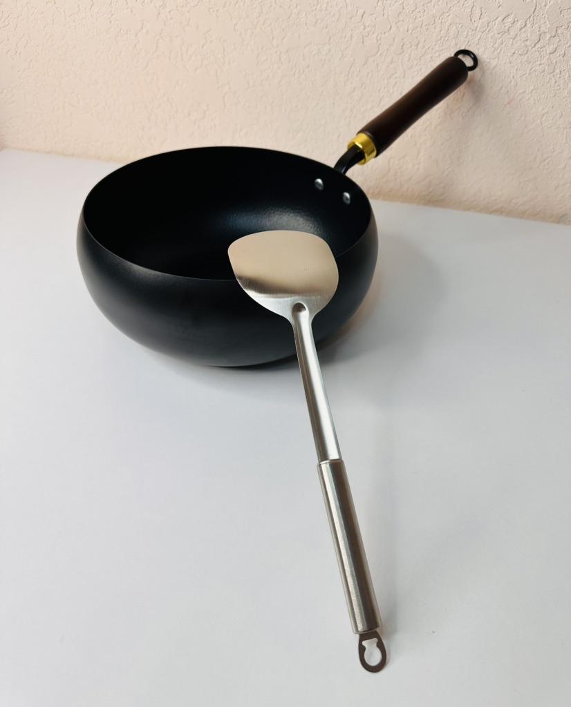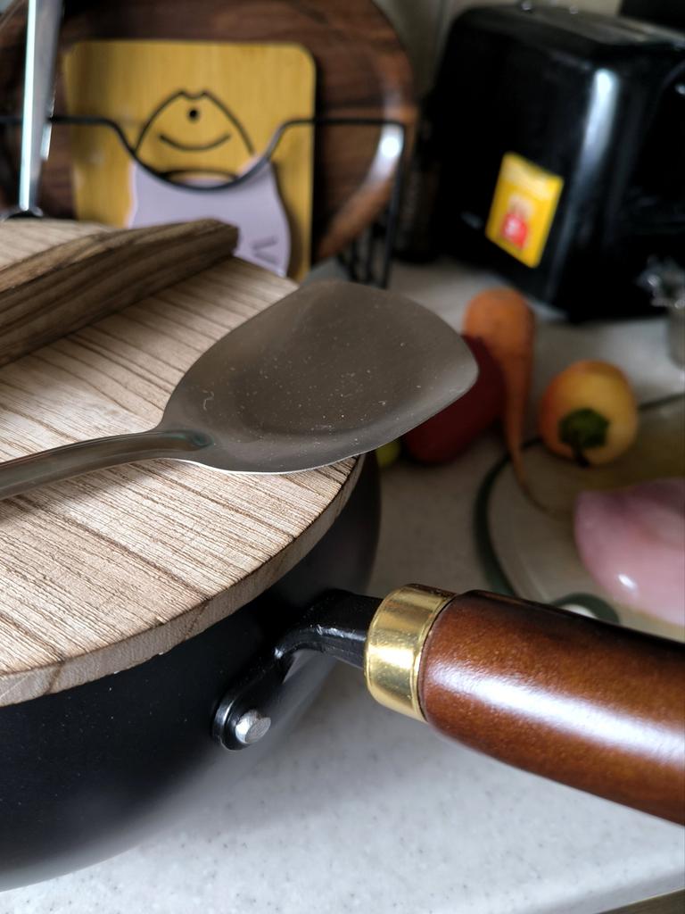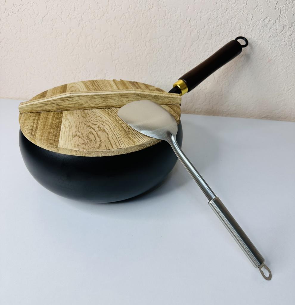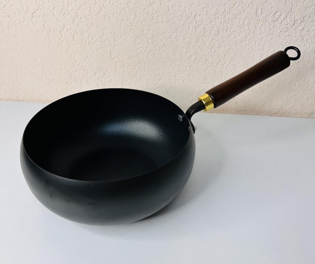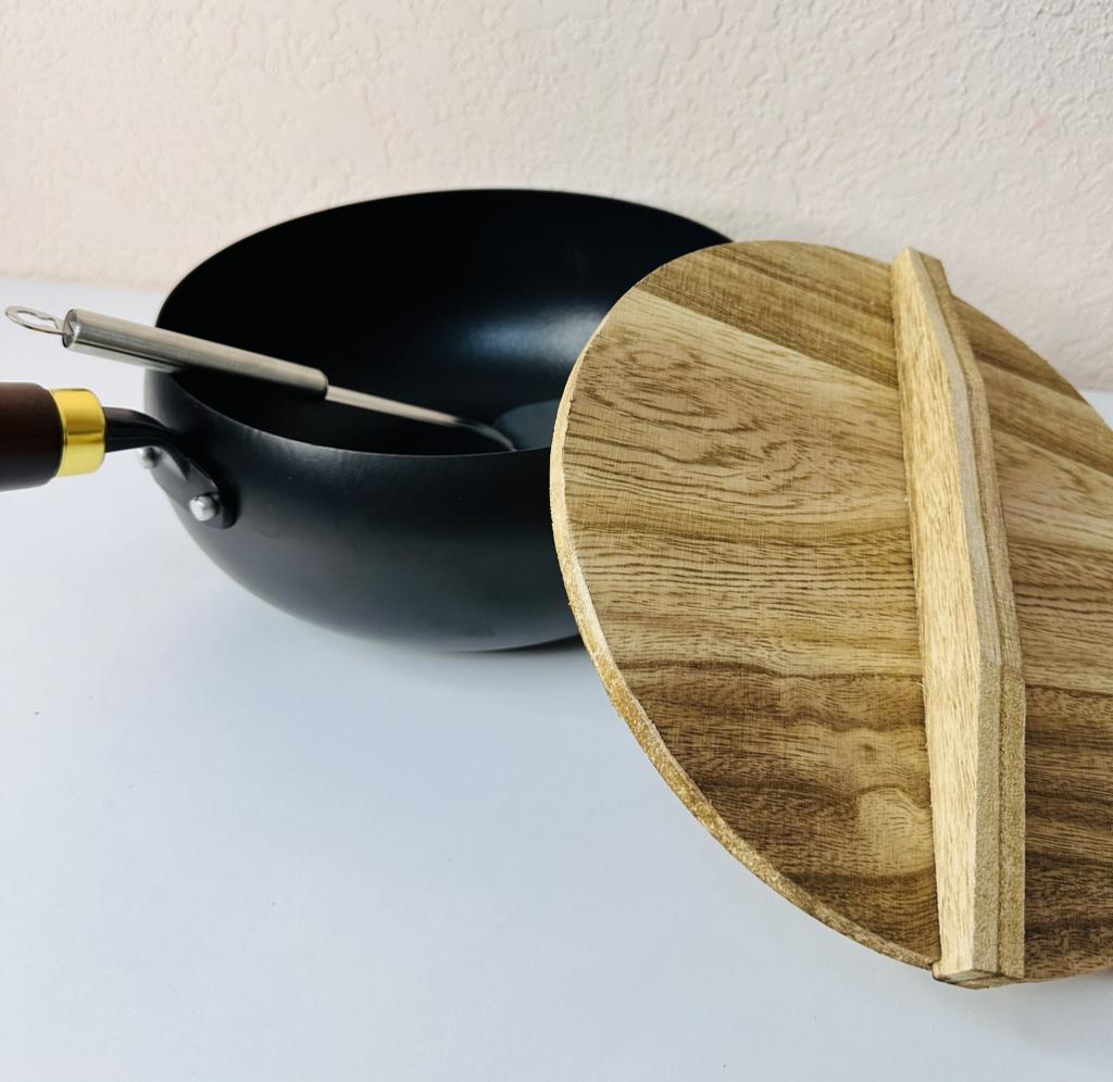 Versatile Culinary Companion: Unleash the thick design cooking pot's multifunctional prowess with 7-in-1 capabilities suitable for various cooking styles. From stir-fries to soups and fried delights, its 4cm depth caters to diverse culinary needs. Lightweight yet robust, it empowers effortless one-handed operation, complemented by a heat-resistant wooden handle for secure grip.