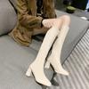New Autumn and Winter Thigh-high Model Boots Thick Heel All Matching Slim Knight Boots Square Head Mid-heel Elastic Slim Boots