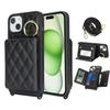 For iPhone 15 Plus/14 Plus Case with Lanyard/Mirror/Card Holder Grids Pattern RFID Blocking Phone Cover