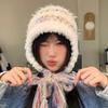 Autumn and winter rainbow candy beans plush wool hat women's plush hat thickened bag head, ear protection hat, warm knitted hat