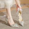 Fashion French Bridal Wedding Shoes New Design Hollow High Heels Pearl Chain Bowknot Sandals for Bride