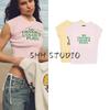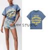 Spring and Summer New Women's Clothing French Style Preppy Style Cotton Printing Washing Effect Short Sleeve round Neck T-shirt 3253358