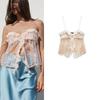 Spring and Summer New Women's Clothing Laminated Decoration Bows Ruffles V Neck Camisole Knitting Tops 4192047