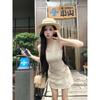 Kumikumi Pure Desire Style Hollow out Solid Temperament Short sleeve Dress Women Summer Waist Hugging Slimming All-Match A- line Skirt