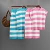 Fashion half-zip olo collar striped knitted short-sleeved suit women's casual wide-leg pants summer two-piece suit